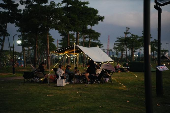 横琴花海长廊5号驿站拥有开阔的露营草坪,是体验“轻露营”的热门选择。结束一天的骑行后,不妨在此听涛观星,别具诗意。
