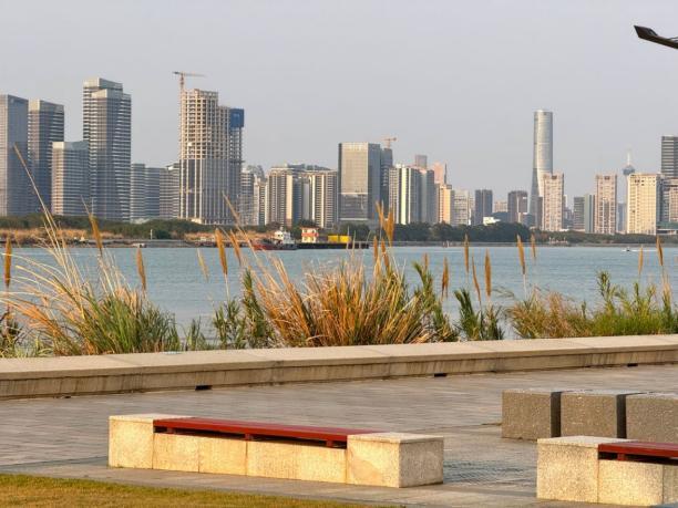 推荐傍晚时分骑行抵达横琴花海长廊4号驿站,落日余晖穿过木棉枝丫,洒在步道与花丛间,光影温柔而浪漫。驿站毗邻横琴芒洲湿地公园,骑行至此还可远眺其滨海生态风貌,感受自然的静谧与清新。