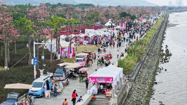 每年11月中旬至12月中旬,近10公里的横琴花海长廊4300余株樱花木棉绽放,沿线设有5个驿站,提供休憩、补给、租车及露营等服务,串联起骑行运动、生态观光与亲子休闲的微度假体验,让骑行不止于“骑”,更在于“停”与“享”。